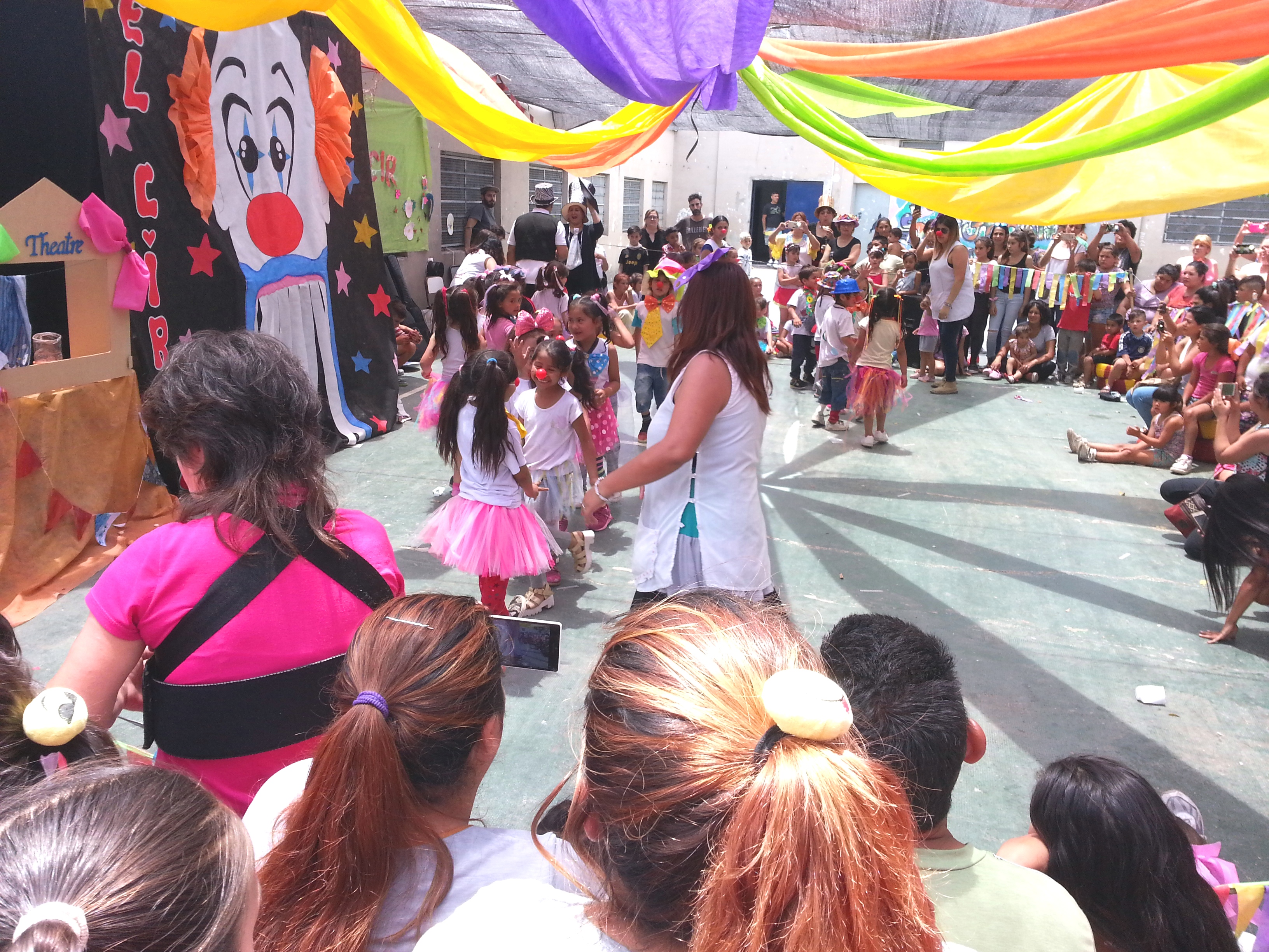 Con un gran despliegue plástico y visual esta comunidad educativa celebró un nuevo año de trabajo que va concluyendo. En un patio colmado de familias, chicas y chicos participando de expresiones teatrales, circenses y musicales, se desarrolló el Festival de Teatro “Circo de la Cárcova”, una presentación de números artísticos que expresa la tarea realizada con lxs alumnxs, por lxs docentes a cargo de las doce secciones de la escuela y sus “profes” especiales. Una verdadera exposición de lenguajes y destrezas múltiples que permite la formación artística temprana en los chicos y las chicas.