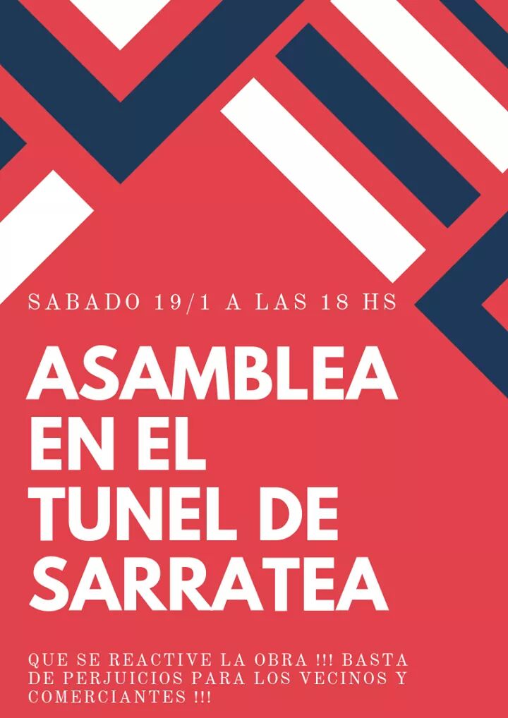 Mientras tanto, para el próximo sábado 19 de enero, a las 18 horas, hay una autoconvocatoria en el lugar, para reclamar a la gobernadora María Eugernia Vidal l inmediata reanudación de la construcción del túnel.