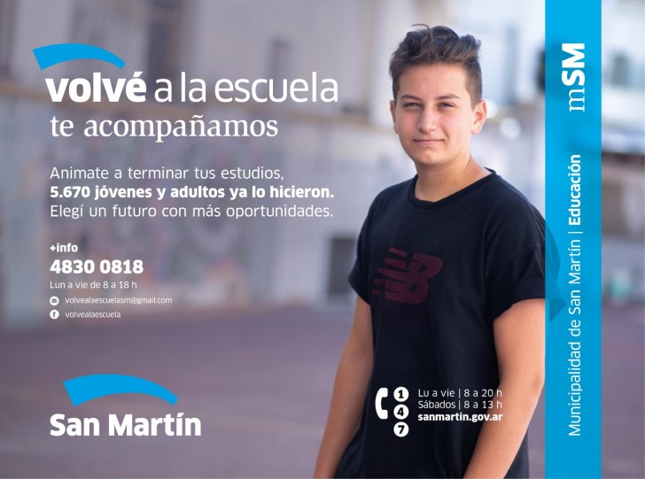 Las áreas municipales de Educación, Salud y Desarrollo Social, promotorxs y voluntarixs recorrerán distintos barrios de General San Martín para convocar a jóvenes y personas adultas, a terminar sus estudios primarios o secundarios. Lxs interesadxs en colaborar deben completar un formulario por internet, ingresando a: https://bit.ly/2Fdbs0 (cero), hasta el 28 de enero próximo. Luego, el miércoles 30 de enero, a las 9 horas, deberán asistir a una capacitación en el Salón “Malvinas” del Palacio Municipal, Belgrano 3747.