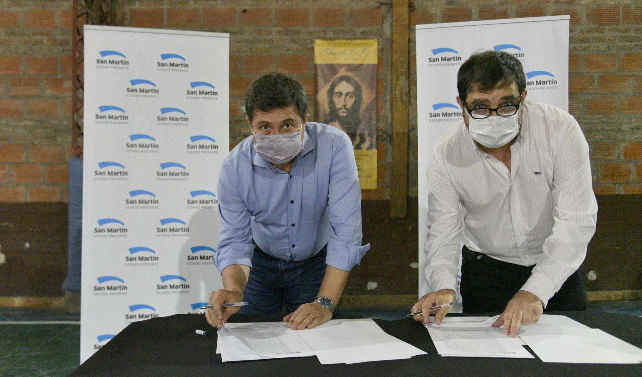 El intendente municipal de General San Martín, Fernando Moreira, y el ministro de Desarrollo Social de la Nación, Daniel Arroyo, visitaron el martes 24 de Noviembre, la parroquia del barrio de Villa Hidalgo, en la intersección de las calles Manuel Estrada y San Cayetano. Acompañados por el Secretario de Desarrollo Social del municipio, Oscar Minteguía, firmaron un convenio para implementar el Programa Banco de Herramientas, Maquinarias y Materiales.